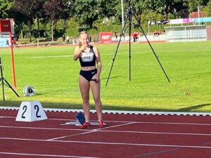 Auch in den Einzeldisziplinen sorgten die TuS-Leichtathletinnen für Aufmerksamkeit. Insbesondere Tjalda Gertje zeigte an beiden Meisterschaftstagen große Form: Im 400-Meter-Lauf gelang ihr mit einer neuen persönlichen Bestleistung von 62,29 Sekunden ein siebter Platz in der U18 – und sie erfüllte das gesteckte Ziel, unter die besten acht Läuferinnen zu kommen. Dieser Erfolg war mehr als verdient und spiegelt den Trainingsfleiß sowie die konsequente Vorbereitung der letzten Wochen wider. Am zweiten Tag ließ Tjalda Gertje im 200-Meter-Lauf ein weiteres Highlight folgen. Sie verbesserte ihre alte Bestmarke um fast eine volle Sekunde auf starke 27,34 Sekunden, was nicht nur den Sieg im eigenen Zeitlauf, sondern auch einen beachtlichen 13. Platz im großen und leistungsstarken U18-Starterfeld bedeutete.